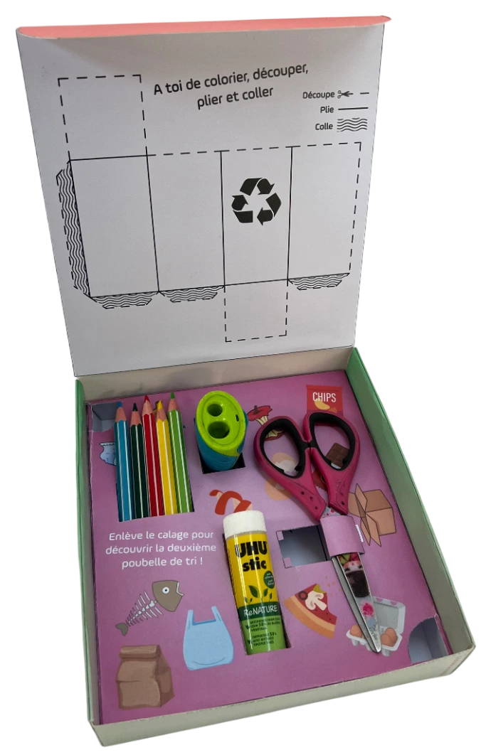 L’objectif de cette boîte est de sensibiliser les plus jeunes au tri des déchets, en leur proposant une activité ludique et pédagogique. Le concept s’inscrit ainsi parfaitement dans l’esprit du slogan « Demain entre tes mains ».